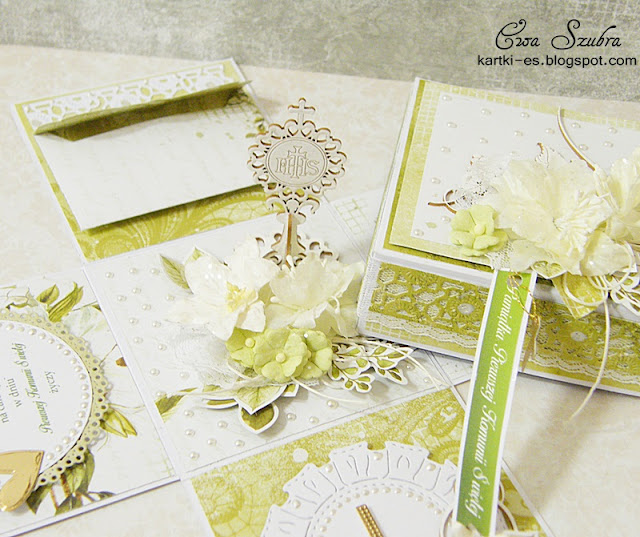 sezon komunijny przed nami, dlatego w ramach inspiracji dla Scrapka przygotowałam exploding box, z piękną wycinanką 3D od Anemone. Użyłam tez innych wycinanek, które najpierw pokryłam białym pudrem do embossingu. Mam nadzieję, że Wam się spodoba.